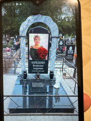 Хочу выразить Артему благодарность за качественную консультацию и помощь в выборе памятника, и цены намного ниже чем у других делает хорошие скидки .Ребятам установщикам выражаю благодарность за аккуратность и качественную работу Отдельное спасибо художнику, с фотографии Перенес на памятник фото один в один Получилось Очень естественно и натурально видно что профессионал своего дела !. Все сделали именно как я и хотела .